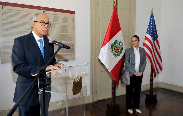 Para celebrar los 20 años de su vigencia, el director general para Asuntos Culturales de nuestra Cancillería, embajador Javier León, y la consejera para Asuntos de Prensa y Cultura de la Embajada de EE.UU. en el Perú, Marcia Bosshardt, presentaron la exposición “Recuperando la historia”.