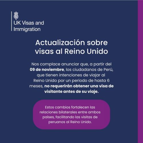 Según remarcó, este cambio fortalece las relaciones bilaterales, facilitando las visitas de peruanos al Reino Unido.