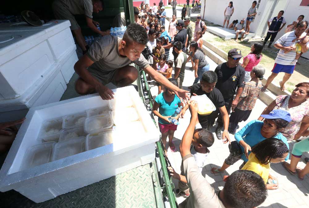 Precisó que estas labores se hacen gracias a la ayuda de las Fuerzas Armadas, que ayudan con la distribución de las raciones, en este caso, los alimentos son transportadas con camiones del Ejército.