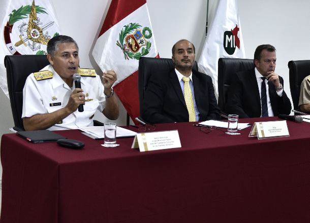 Ministros Jakke Valakivi (Defensa) y José Luis Pérez Guadalupe (Interior) y el jefe del Comando Conjunto de las Fuerzas Armadas, Almirante Jorge Moscoso, dieron detalles del operativo.