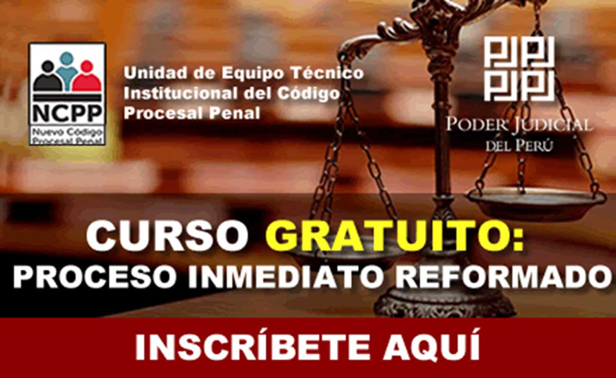 Con el objetivo de capacitar al personal jurisdiccional y administrativo del Poder Judicial, así como al público en general, en los avances del Código Procesal Penal, la subgerencia de Capacitación de la Gerencia General del Poder Judicial y la Unidad Técnica Institucional del Código Procesal Penal (ETI-Penal), ha programado el curso virtual “Proceso Inmediato Reformado”.