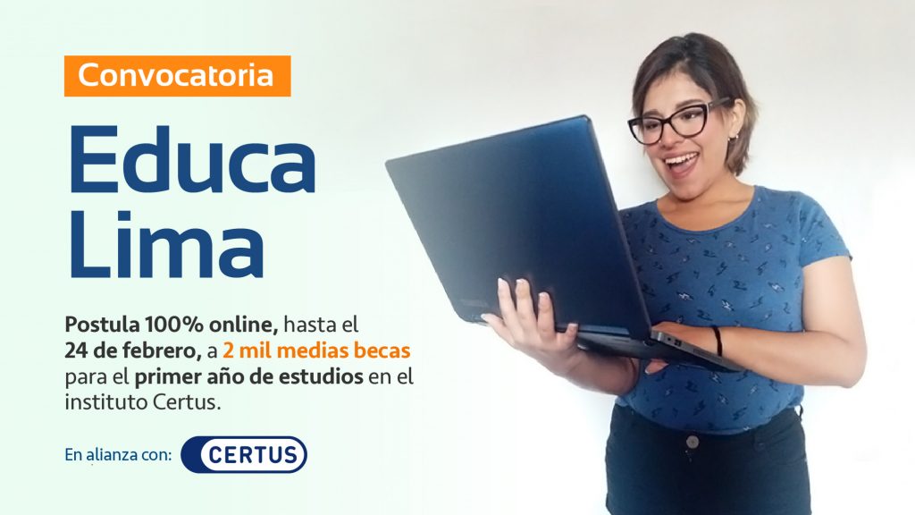 A fin de contribuir al fortalecimiento de la educación en la ciudad, la Municipalidad de Lima y el Instituto Certus presentan un programa de 2,000 medias becas en el primer año de estudio para que jóvenes residentes de Lima Metropolitana accedan a carreras de educación superior.