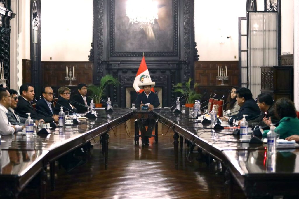 El presidente Pedro Castillo Terrones se reunió con los directivos de la Asociación Nacional de Radiodifusores; las Asociaciones Regionales de Radio y Televisión del Perú; la Coordinadora de Medios y los decanos de los Colegios de Periodistas del Perú.