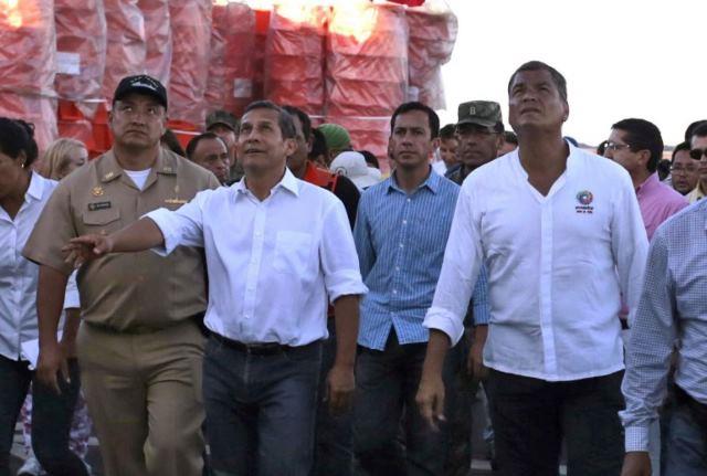 Humala, por su parte, dijo que la ayuda de Perú a Ecuador es de todo corazón con un país hermano, afectado por un terremoto de 7,8 grados, el 16 de abril pasado.