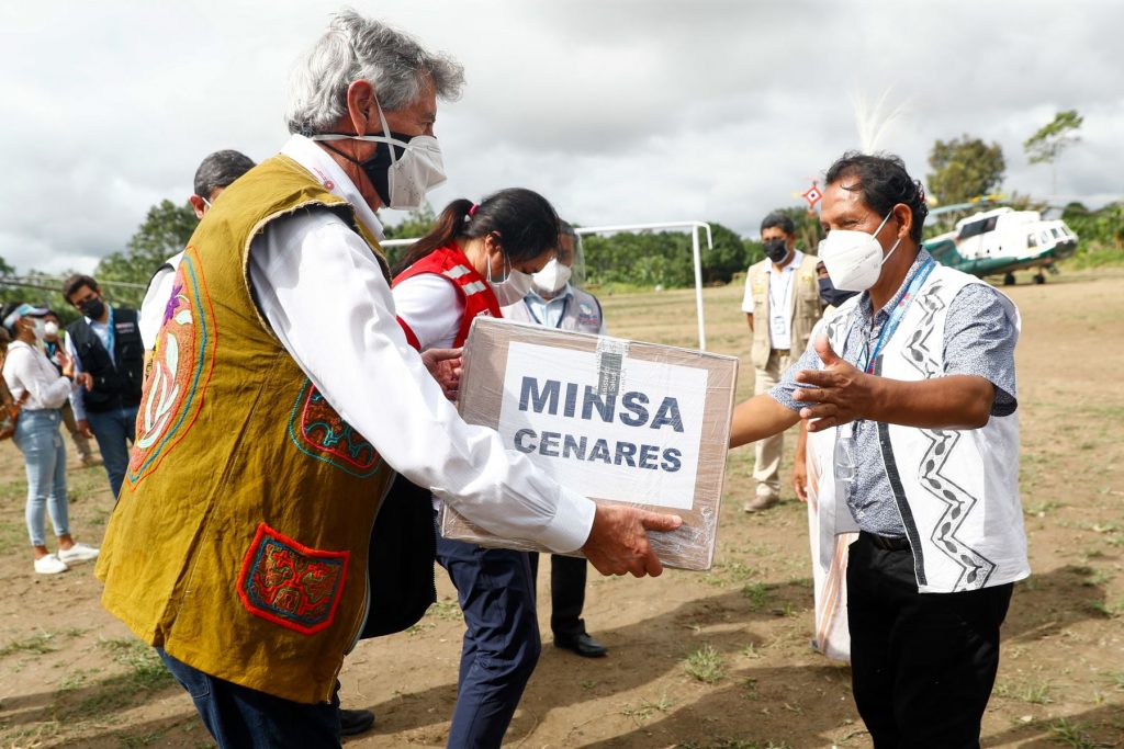 El mandatario estuvo acompañado en esta actividad de los ministros de Salud, Óscar Ugarte, y Educación, Ricardo Cuenca, con quienes además supervisó el inicio de la estrategia Aprendo en Casa en una comunidad nativa.
