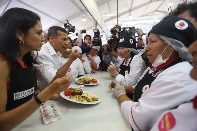 El presidente Ollanta Humala y la primera dama Nadine Heredia degustas los sabores de nuestra gastronomía, durante la inauguración de hoy de Mistura 2015.