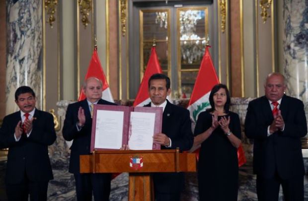 El mandatario peruano rubricó la norma legal que fue aprobada por unanimidad por el Congreso de la República, acompañado por el presidente del Consejo de Ministros, Pedro Cateriano; la ministra de Relaciones Exteriores, Ana María Sánchez; el gobernador regional de Tacna, Omar Jiménez; y el alcalde de la provincia de Tacna, Luis Torres.