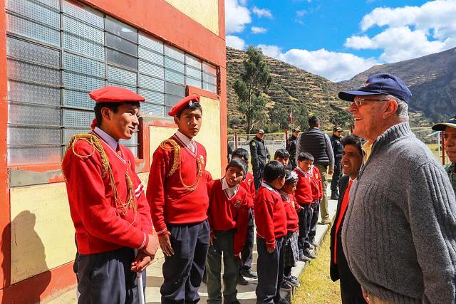 El mandatario conversó con los escolares de Huancaya y les prometió arreglar y habilitar su colegio, así como a mejorar la carretera y el saneamiento de la localidad, ubicada en la provincia de Yauyos.