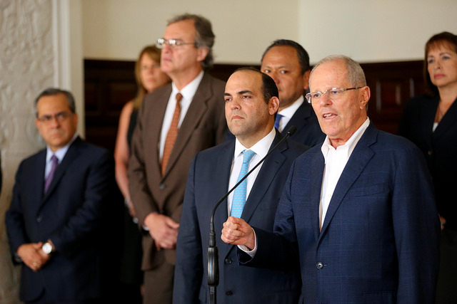 El presidente Pedro Pablo Kuczynski, al lado de su gabinete ministerial, respaldó al ministro de Educación, Jaime Saavedra, ante los últimos cuestionamientos sobre su gestión.