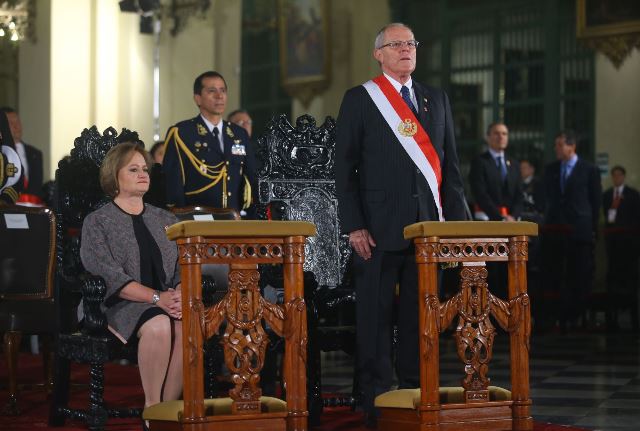 El presidente Pedro Pablo Kuczynski asistió a la Misa Te Deum acompañado de la primera dama de la Nación, Nancy Lange. (Foto Agencia Andina).