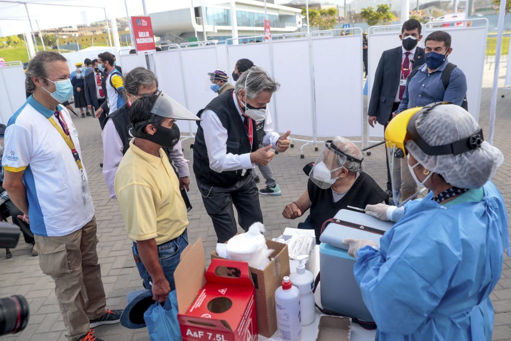 Acompañado por el ministro de Salud, Oscar Ugarte; y el director ejecutivo del Proyecto Especial Legado de los Juegos Panamericanos y Parapanamericanos, Alberto Valenzuela; el mandatario recorrió las instalaciones acondicionadas para el proceso de vacunación y dialogó con varios adultos mayores que fueron inoculados.