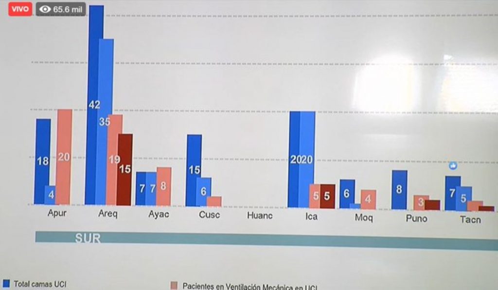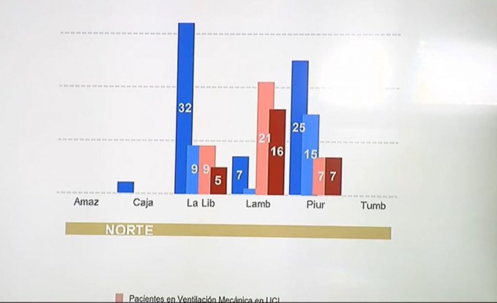 Indicó que para una mejor organización de los datos de las camas UCI, el Minsa dividió en 4 el territorio nacional: norte (Amazonas, Cajamarca, La Libertad, Piura, Tumbes), oriente (Huánuco, Loreto, Madre de Dios, San Martín y Ucayali), centro (Ancash, Junín, Pasco y Lima regiones) y sur (Apurímac, Arequipa, Ayacucho, Cusco, Huánuco, Ica, Moquegua, Puno y Tacna).