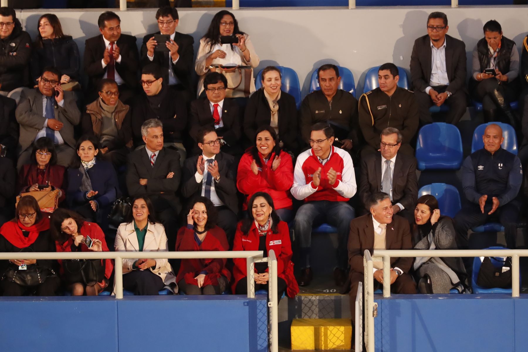 Al acto realizado en el Coliseo Manuel Bonilla asistieron la ministra de Educación, Flor Pablo; de Justicia, Vicente Zeballos, de Salud, Zulema Tomás; de la Mujer, Gloria Montenegro, del presidente de la COPAL, Carlos Neuhaus, el alcalde de Lima, Jorge Muñoz, la presidenta de la Comisión de Educación del Congreso, Tamar Arimborgo, entre otros.