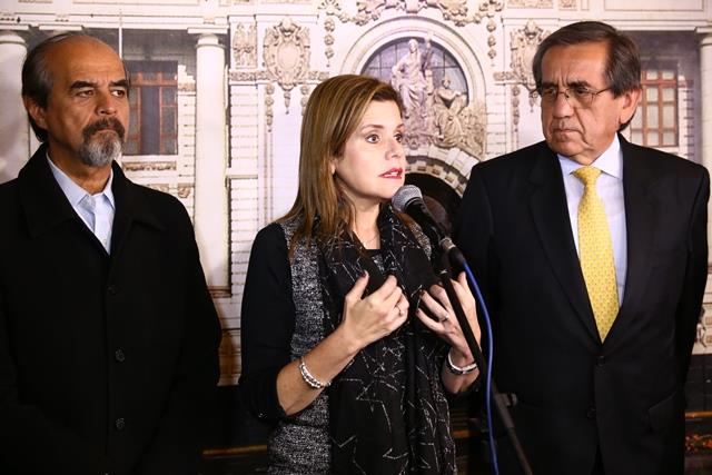 La jefa del Gabinete Ministerial, Mercedes Araoz, dialogó esta tarde con la bancada aprista en el Congreso de la República.