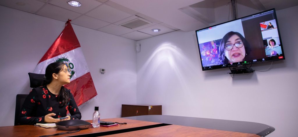 Lima, 14 de julio del 2020. La directora ejecutiva del Proyecto Especial Bicentenario de la Presidencia del Consejo de Ministros, Gabriela Perona Zevallos, participó esta mañana en la Reunión Técnica Mundial “Reimaginando el Voluntariado para la Agenda 2030”, organizado por el programa de Voluntarios de la Naciones Unidas (UNV, por sus siglas en inglés), entidad que busca contribuir con el desarrollo del voluntariado en el mundo.
