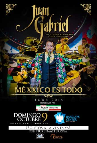 El afiche publicitario que había sido preparado para difundir la presentación del ícono de la canción, Juan Gabriel, en Nueva York.