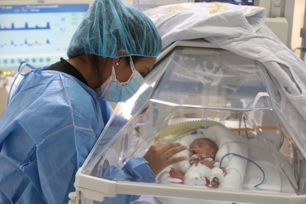 Por su parte, la doctora Marilú Pachas, del Servicio de UCI-Neonatal, explicó, que el neonato es un prematuro extremo que nació a las 23 semanas (antes de los seis meses de gestación). “Es el bebé más pequeñito nacido de una mamá con diagnóstico positivo al covid-19 y el más pequeñito que haya recibido nuestra unidad”.