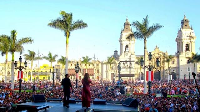 La Municipalidad de Lima viene desarrollando en la Plaza de Armas una Gran Serenata con el desfile de connotados artistas, con motivo de celebrarse mañana el 481º Aniversario de la Fundación de nuestra capital peruana. Lima está de fiesta.