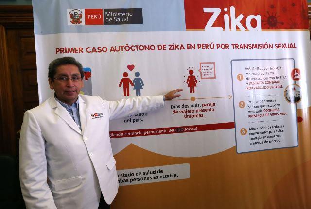Lima, abr. 16.- El ministro de Salud, Aníbal Velásquez, informó hoy que se ha reportado en el país el primer caso autóctono del zika por transmisión sexual en una peruana que fue contagiada por su pareja luego de que éste volvió de Venezuela con dicha enfermedad.