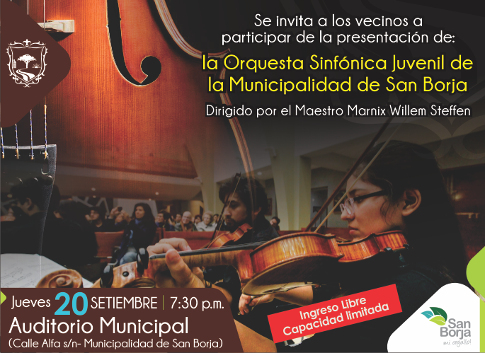 Disfruta el jueves 20 de setiembre de una nueva presentación de la Orquesta Sinfónica Juvenil de la Municipalidad de San Borja.