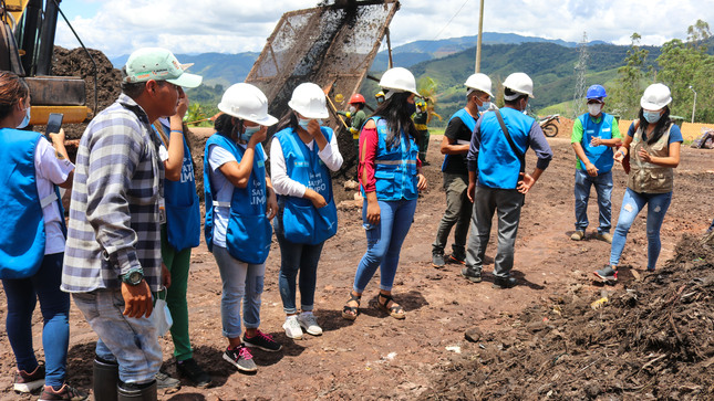 Para conocer de cerca el trabajo y el funcionamiento de la moderna planta de valorización y disposición final de los residuos sólidos, un promedio de diez jóvenes promotores ambientales voluntarios fue participes en esta pasantía, ubicado en el Centro Poblado de Portillo Alto del distrito de Río Negro.