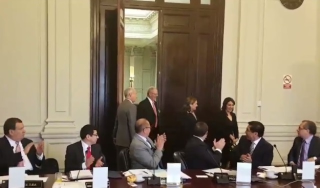 Luego, los tres se dirigieron al salón donde se llevaba a cabo el acostumbrado Consejo de Ministros y entre aplausos recibió el saludo del primer ministro Fernando Zavala y de cada uno de los titulares de los portafolios, dándole un toque especial de reivindicación a su designación.