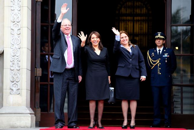 A manera de hacer público el respaldo y desagravio del Poder Ejecutivo a la exprocuradora Julia Príncipe Trujillo, el presidente Pedro Pablo Kuczynski y la ministra de Justicia Marisol Pérez Tello, la recibieron en la puerta del Palacio de Gobierno y expresaron su saludo a la prensa.