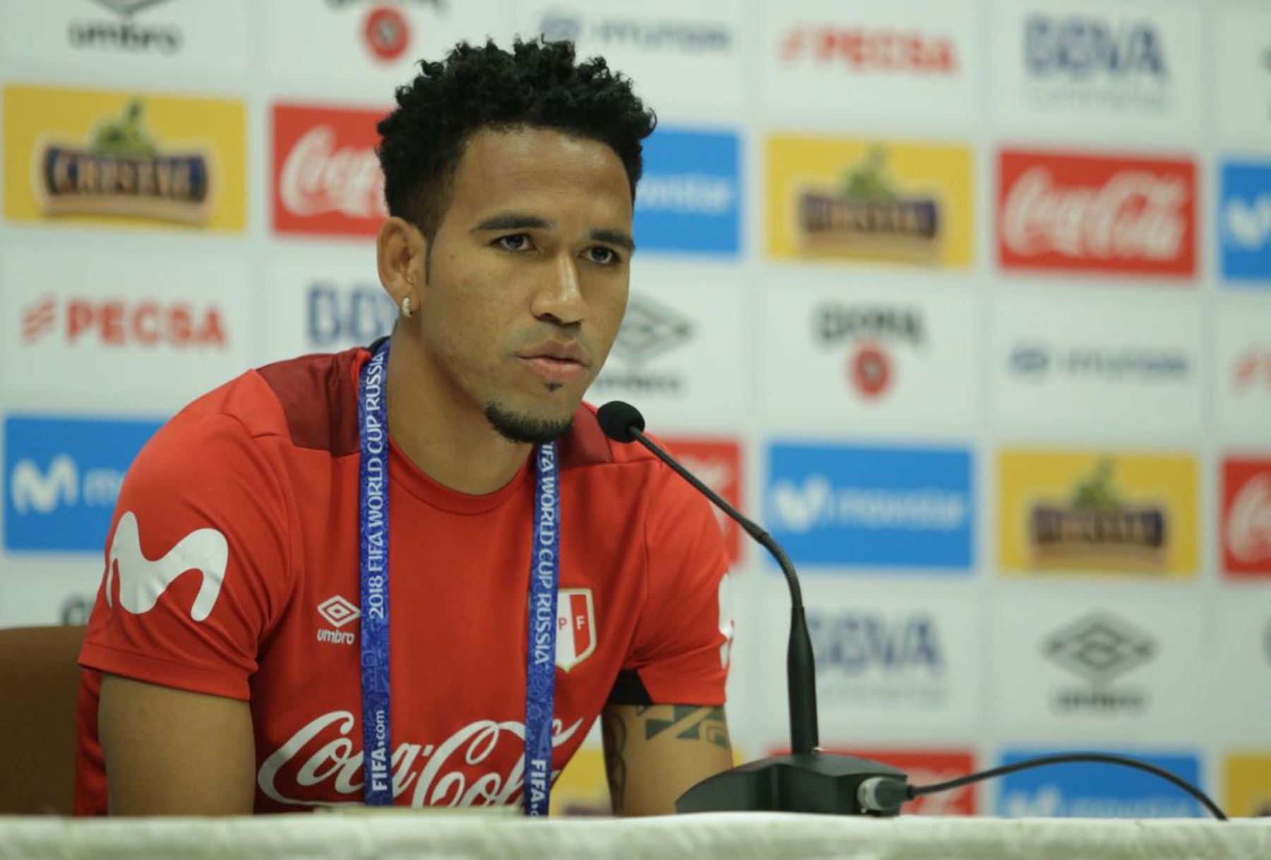 Pedro Aquino y Pedro Gallese en conferencia de prensa con medios peruanos e internacionales en Moscú. Vamos Perú! 🇵🇪🙌🏽 #PreparadosParaTodo #ArribaPeru pic.twitter.com/Of3d7DS2dU