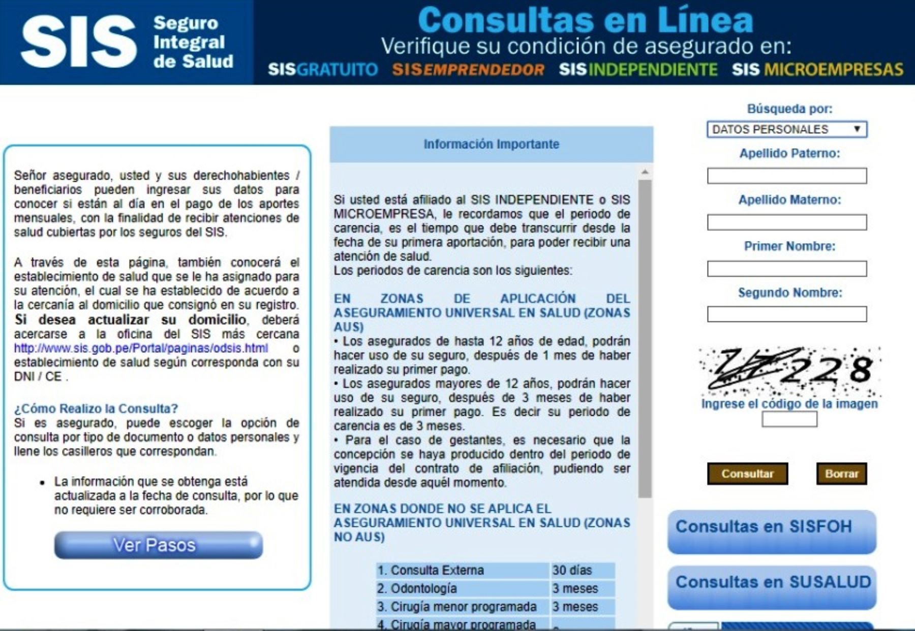 Si una persona está interesada en saber si ya fue afiliada automáticamente, solo basta con ingresar a este enlace del portal web del SIS, ir hacia el lado derecho a la ventana “Consulta de asegurado” y luego dar click para ingresar a “Consultas en Línea”. Hacia el lado derecho se encontrará la opción “Búsqueda por…”, donde se debe elegir si se ingresa el número de documento o los datos personales para hacer la consulta.
