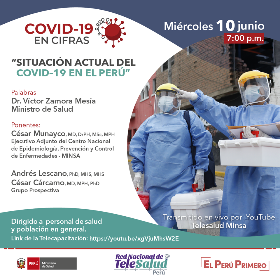 📌 INVITACIÓN | Este miércoles 10 de junio, los invitamos a participar en la segunda telecapacitación “Situación actual del COVID-19 en el Perú”, dirigida al personal de salud y al público en general.