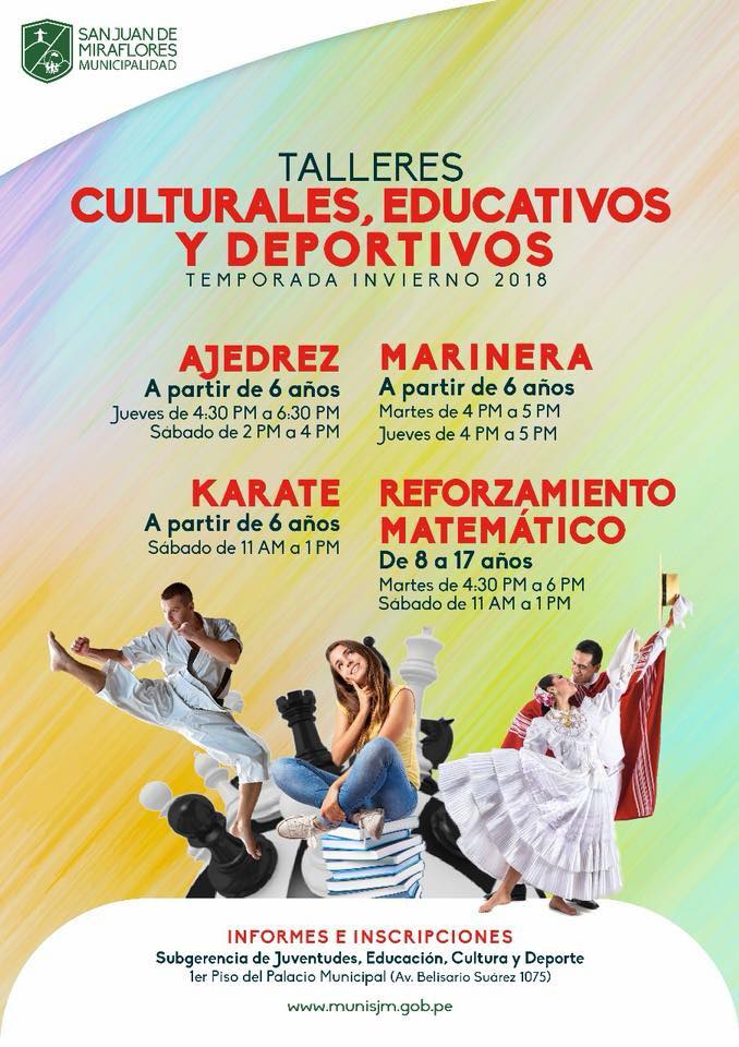La Muncicipalidad de SJM te invita a participar de los Talleres Culturales, Educativos y Deportivos – Temporada Invierno 2018