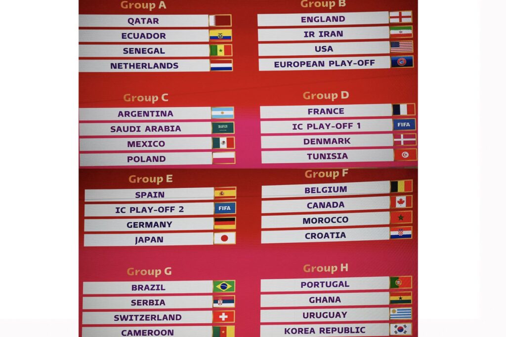 Los grupos de la Copa del Mundo en Catar 2022 (21 de noviembre al 18 de diciembre) luego del sorteo efectuado el viernes en Doha: