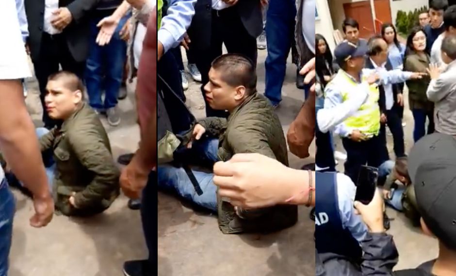 Un vídeo difundido por la página Sanmarquinos de corazón muestra al presunto agresor reducido, sentado en el suelo, mientras es rodeado de personas que le reclaman su accionar.