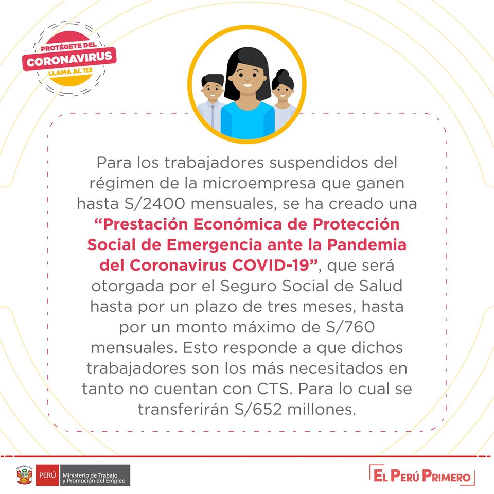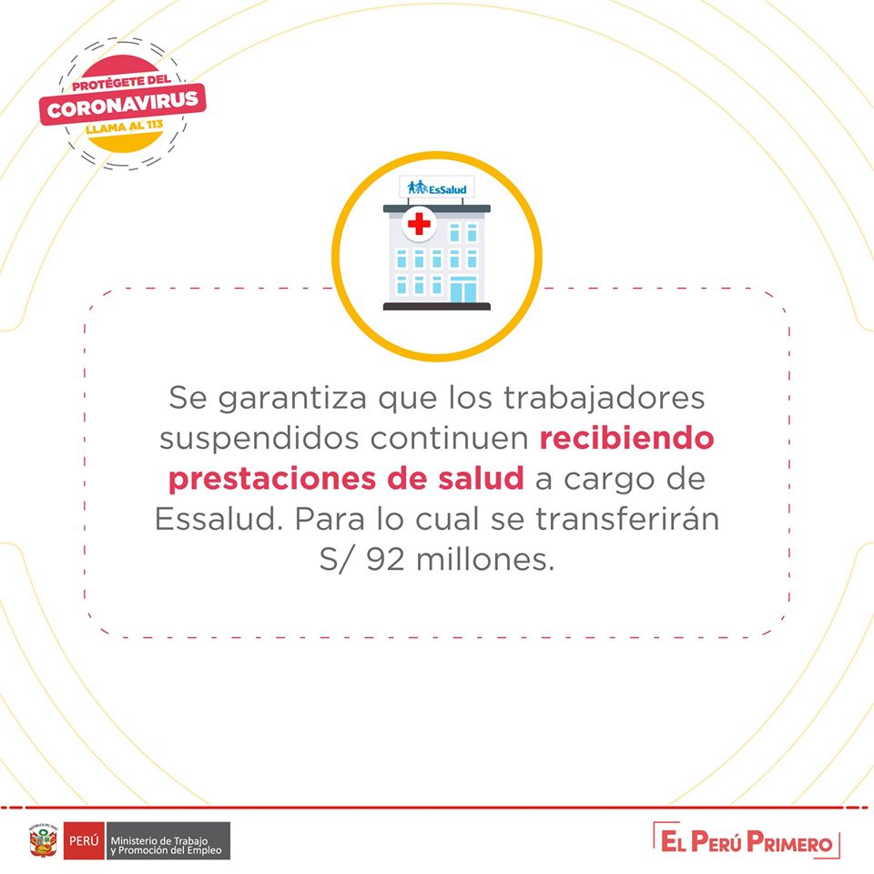 Conoce más sobre las garantías establecidas para la protección del trabajador, en caso de suspensión perfecta de labores durante la Emergencia Sanitaria. 👇 #PerúEstáEnNuestrasManos
