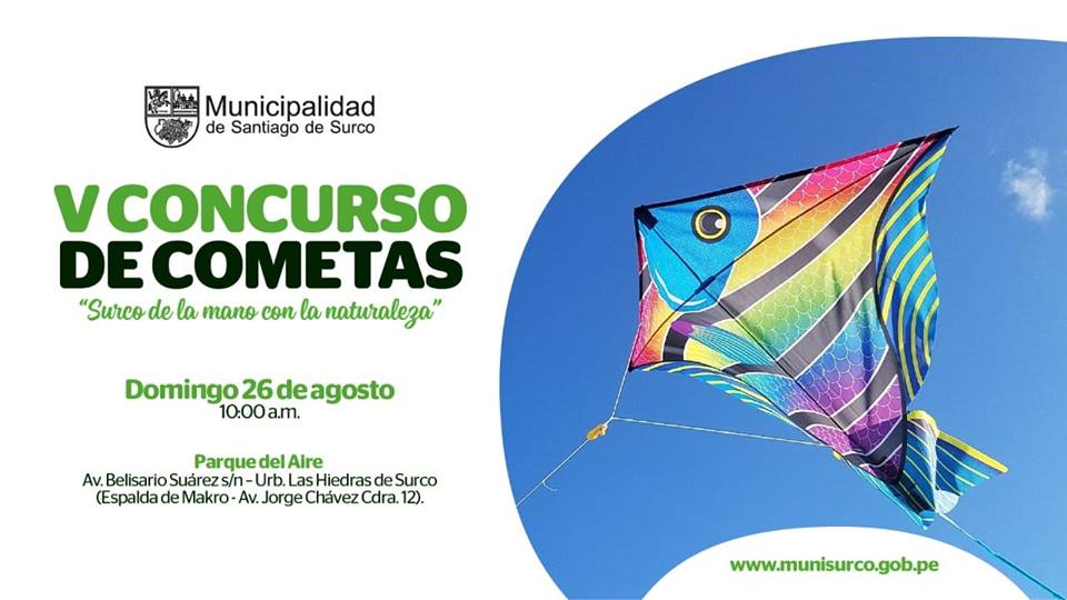 Nada más importante que incentivar la creatividad en nuestros pequeños, enseñarles la importancia del reciclaje y pasar un divertido momento con ellos. Por eso, bajo el lema “Surco de la mano con la naturaleza”, la Municipalidad de Santiago de Surco promueve en agosto, mes de los vientos, el “V Concurso de Cometas 2018”.