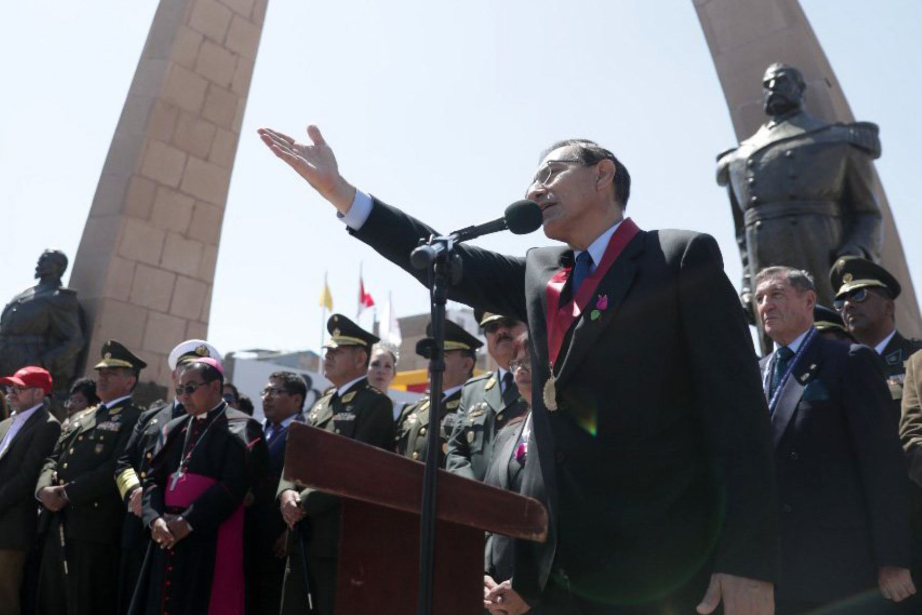 “Aquí, en Tacna, al lado de Grau y de Bolognesi, le digo a Tacna, y al Perú, que no me van a doblegar. Continuaremos el rumbo que trazamos el 28 de julio. No nos van a doblegar, hagan lo que quieran, lo que puedan, pero no podrán con el pueblo del Perú que está decidido a combatir a la corrupción”, manifestó en tono enfático desde la plaza de Armas de la Ciudad Heroica.