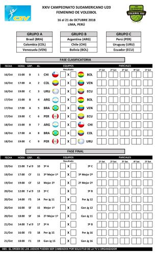 Nueve países se darán cita en el Coliseo Manuel Bonilla de Miraflores, pero solo dos podrán obtener la clasificación para la XIX del Mundial U20. Perú se ubica en la Serie C junto a Uruguay y el debutante Ecuador; Brasil está en la Serie A con Colombia y Venezuela; mientras que en el Grupo B están: Argentina, Bolivia y Chile.